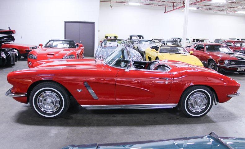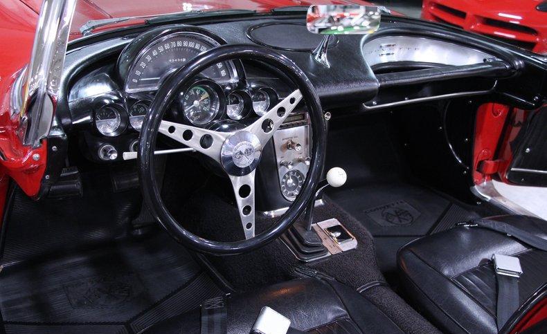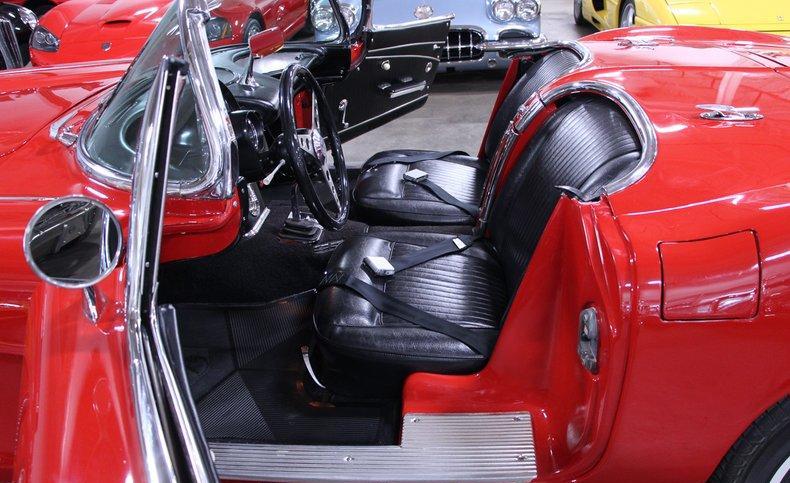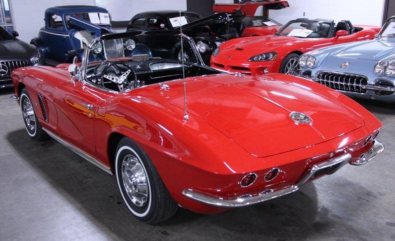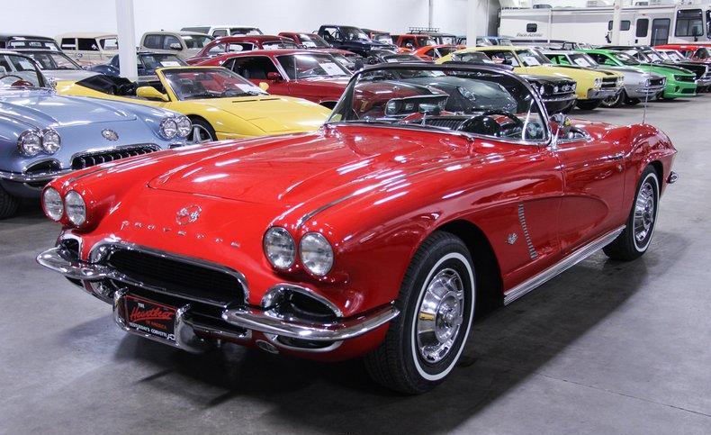 We are pleased to offer this 1962 Chevrolet Corvette Roadster, powered by a period-correct 327ci V8 rated at 250 horsepower and paired with a 4-speed manual transmission with Hurst shifter. Recent upgrades include a new rack and pinion power steering system and Wilwood disc brakes, providing modern control while all original components are preserved and included. Finished in brilliant Roman Red, this Corvette showcases the distinctive styling of 1962 with its toothless grille, body-colored coves, and iconic angled tail with twin taillights. Inside, the black bucket seats, twin-cowl dash, and full gauge package create a true sports car cockpit. A well-presented final-year C1 Corvette, offering both classic style and enhanced drivability.