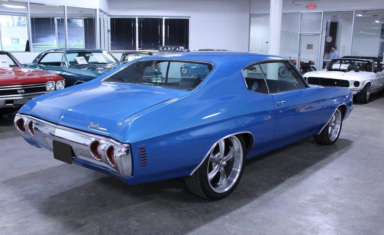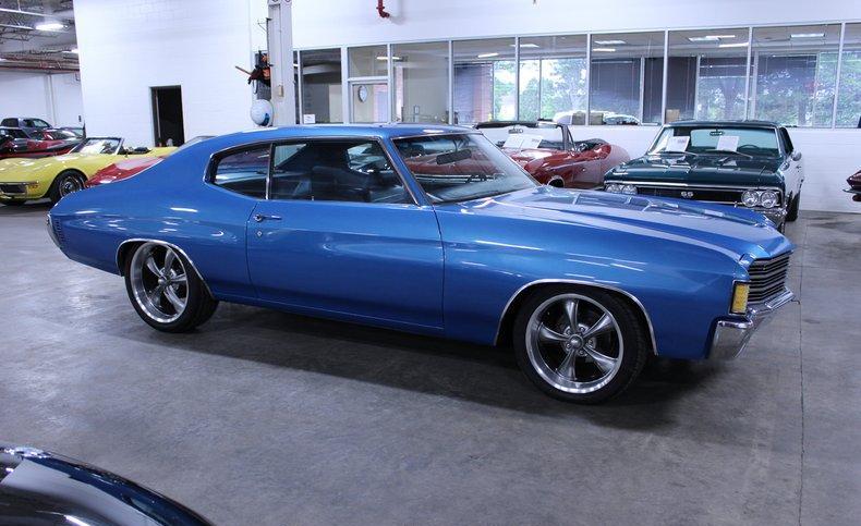 This clean and tastefully modified 1972 Chevrolet Malibu 2-Door Sport Coupe is rust-free and comes with its original build sheet detailing factory options like air conditioning, power brakes, front disc brakes, and power steering. Powered by its numbers-matching L48 350ci 4bbl V8 and paired with a column-shifted automatic transmission, it’s finished in factory Mulsanne Blue over a dark blue interior with a front bench seat. The car features aftermarket Torque Thrust wheels, runs strong, and drives exceptionally well. Believed to have original mileage given the pristine undercarriage, this Malibu is a great example of classic American muscle.