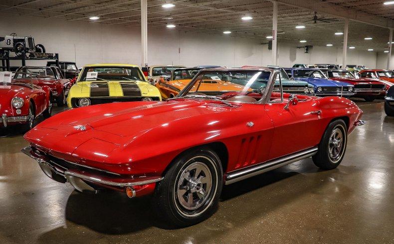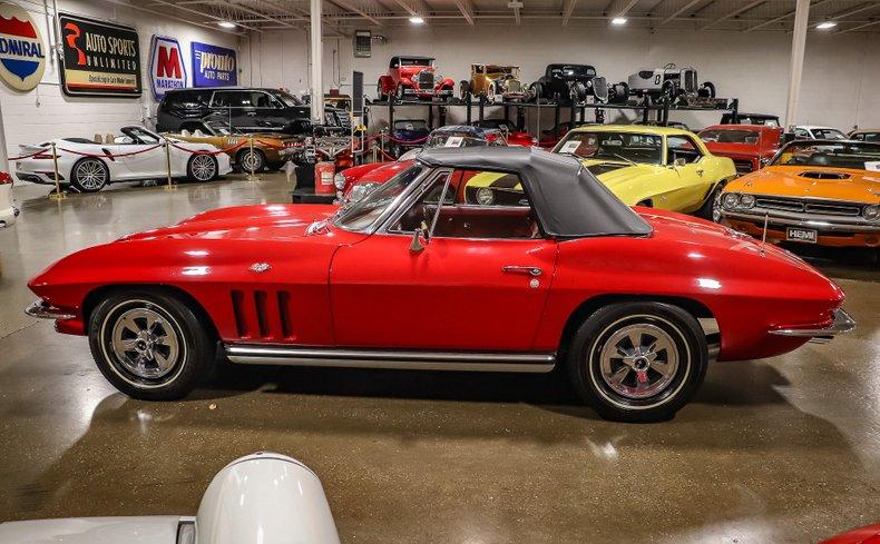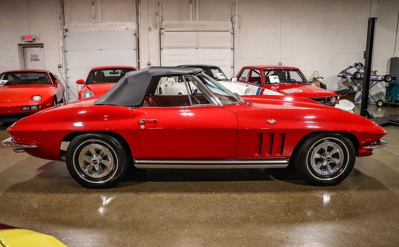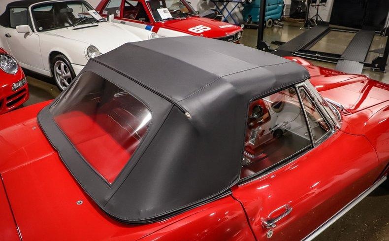 This stunning late C2 Corvette features a full frame-off restoration completed in 2010. Finished in the correct Rally Red (code U) with a black soft top and original red vinyl interior, it retains many original interior parts for an honest, classic look. Powered by a numbers-matching 327ci/300hp V8 with a 4-speed manual transmission, it includes power steering, front disc brakes, and 15” multi-spoke wheels with white stripe radials.