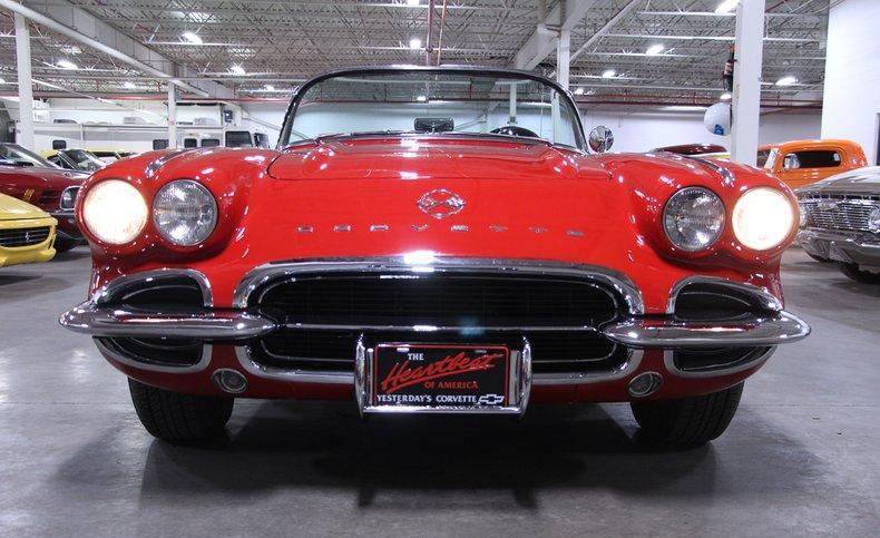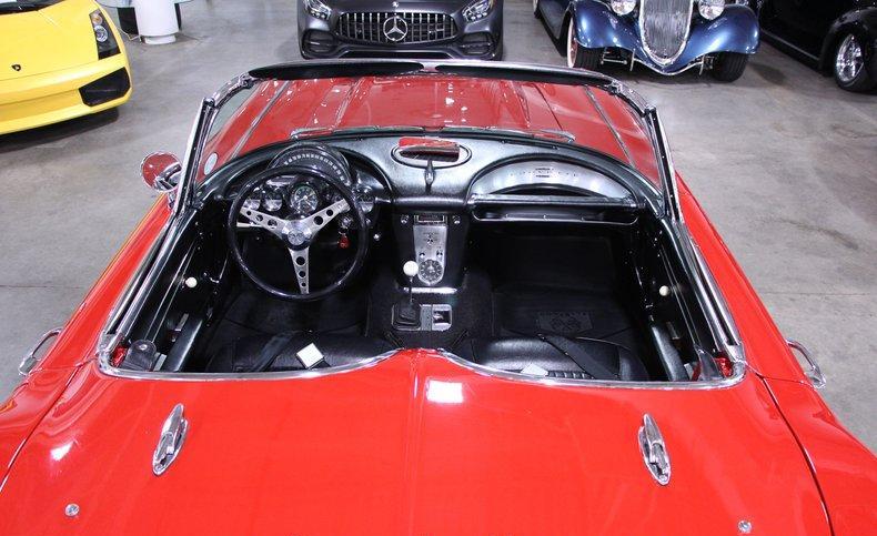We are pleased to offer this 1962 Chevrolet Corvette Roadster, powered by a period-correct 327ci V8 rated at 250 horsepower and paired with a 4-speed manual transmission with Hurst shifter. Recent upgrades include a new rack and pinion power steering system and Wilwood disc brakes, providing modern control while all original components are preserved and included. Finished in brilliant Roman Red, this Corvette showcases the distinctive styling of 1962 with its toothless grille, body-colored coves, and iconic angled tail with twin taillights. Inside, the black bucket seats, twin-cowl dash, and full gauge package create a true sports car cockpit. A well-presented final-year C1 Corvette, offering both classic style and enhanced drivability.