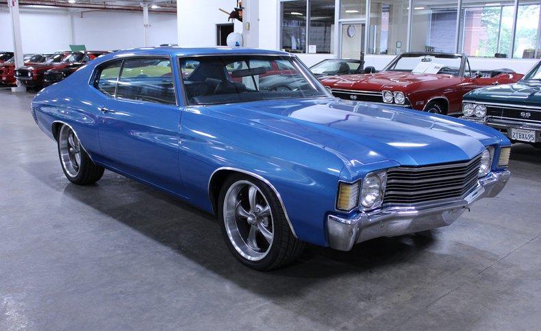 This clean and tastefully modified 1972 Chevrolet Malibu 2-Door Sport Coupe is rust-free and comes with its original build sheet detailing factory options like air conditioning, power brakes, front disc brakes, and power steering. Powered by its numbers-matching L48 350ci 4bbl V8 and paired with a column-shifted automatic transmission, it’s finished in factory Mulsanne Blue over a dark blue interior with a front bench seat. The car features aftermarket Torque Thrust wheels, runs strong, and drives exceptionally well. Believed to have original mileage given the pristine undercarriage, this Malibu is a great example of classic American muscle.
