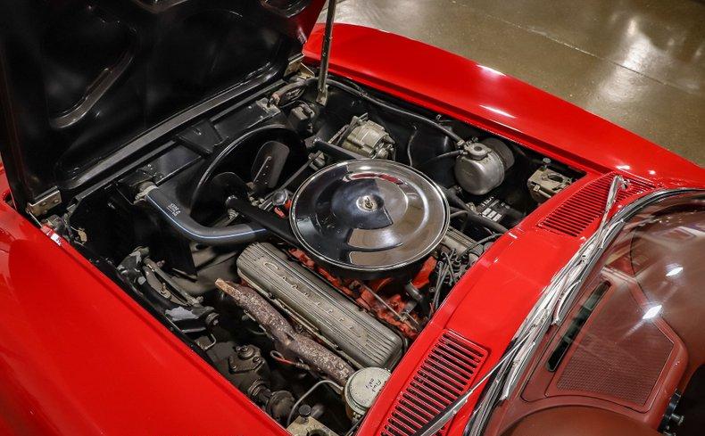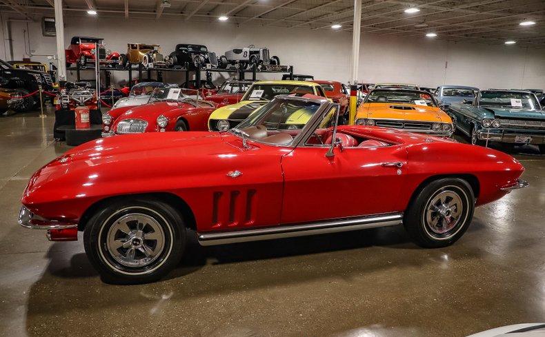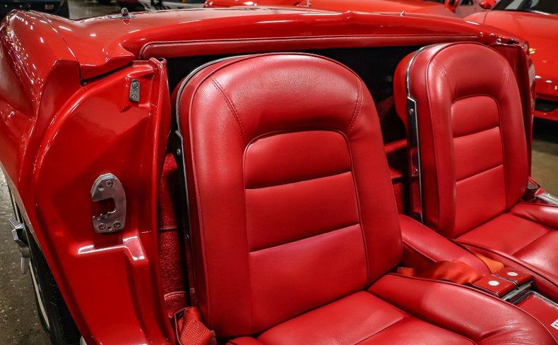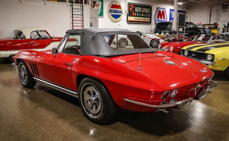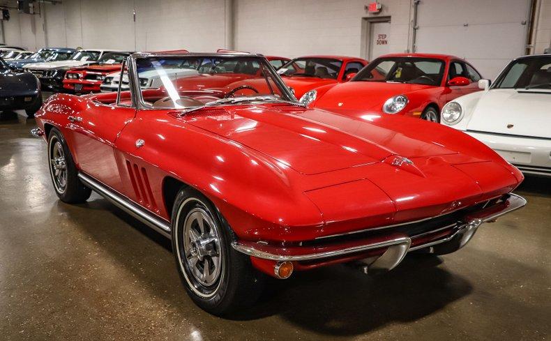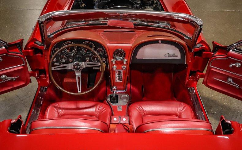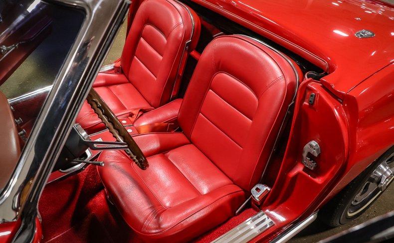 This stunning late C2 Corvette features a full frame-off restoration completed in 2010. Finished in the correct Rally Red (code U) with a black soft top and original red vinyl interior, it retains many original interior parts for an honest, classic look. Powered by a numbers-matching 327ci/300hp V8 with a 4-speed manual transmission, it includes power steering, front disc brakes, and 15” multi-spoke wheels with white stripe radials.