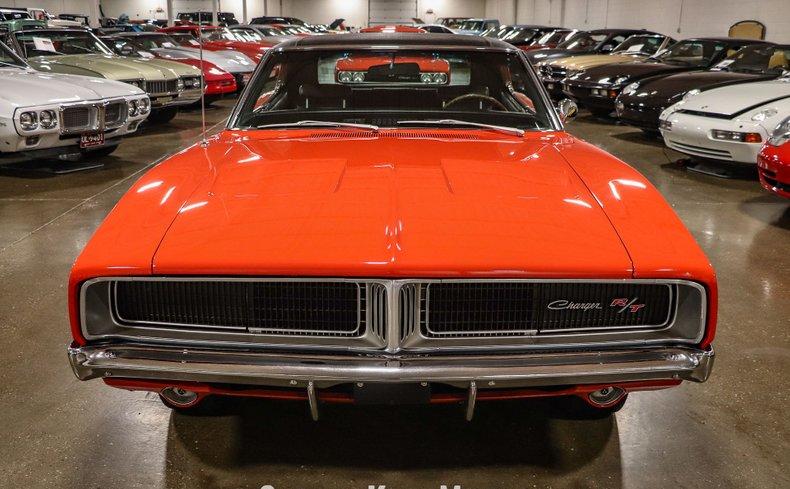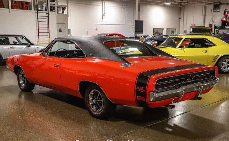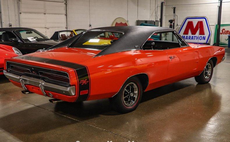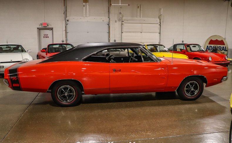 1969 Dodge Charger R/T SE, numbers-matching and fully restored. Finished in Charger Red with black vinyl top. Powered by a correct 440 Magnum 4-barrel V8. Original body panels and detailed interior with wood trim and power windows. A rare survivor featured in Hemmings Muscle Machines.